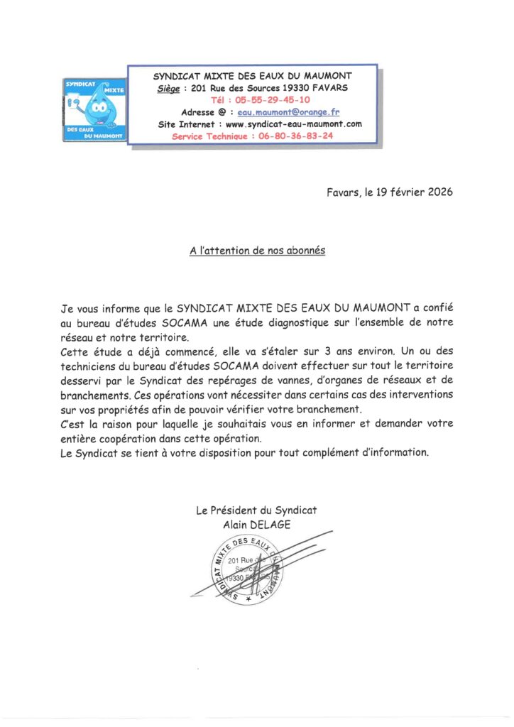 Info SIRTOM – LANCEMENT D’UNE ETUDE DIAGNOSTIQUE DU RESEAU